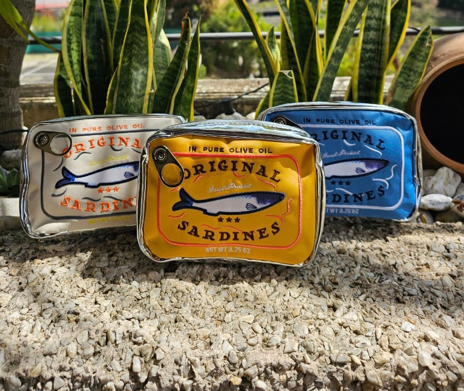 Estuche de cosméticos lata de sardina azul